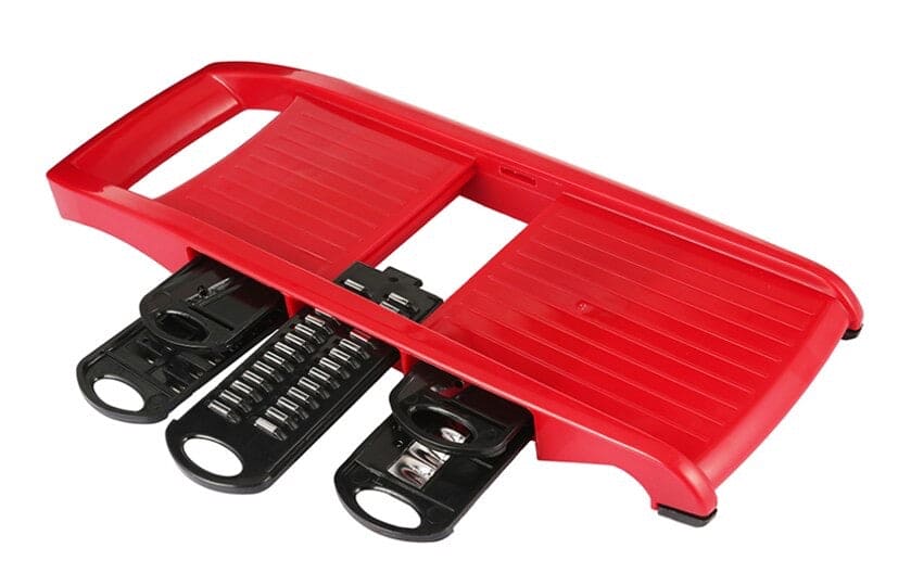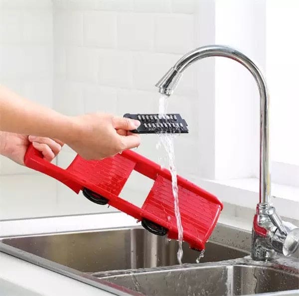 This hand-held slicer made from food grade stainless steel & BPA-Free ABS plastic offers. It offers all the functionality of multiple appliances with changeable stainless blades. These blades can cut through all kinds of vegetable, grating cheese, slicing potato and cutting fruits, even can create paste-like vegetables or mashed potatoes. Different types of stainless steel blades for variety of slicing & cutting. This all-in-one comes with a food container base for less of a mess on the kitchen counter. Strong sharp stainless steel blades makes it easy to cut vegetables and fruits.